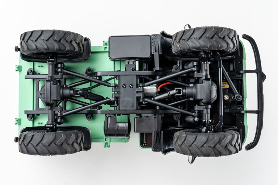 Das Fahrgestell ist eine typische Vierlenkeraufhängung mit Federweg vorne und hinten, um gute Fahrleistungen zu gewährleisten. Bei den Reifen handelt es sich um neu hergestellte MPT-Reifen (Multi-Purpose Tire) mit grobem und festem Profil, die für extremes Gelände wie Schlamm und Sand geeignet sind.
