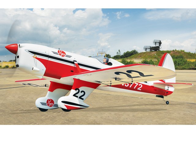 ) basiert auf einer Konstruktion aus dem Jahr 1936 von T. Claude Ryan, aus dessen Feder auch die weltberühmte “Spirit of St. Louis” stammt. Es handelt sich bei der Ryan STA nicht, wie häufig angenommen, um ein Rennflugzeug sondern um ein Sportflugzeug. Das Original ist dabei mit 95 bzw. 125 PS nicht besonders üppig motorisiert. Dennoch überzeugt die Ryan STA durch ihr schnittiges Aussehen und nicht zuletzt durch die guten Kunstflugeigenschaften. Unser Modell ist ausgelegt für Elektro- oder Verbrennungsmotoren und stellt eine absolute Bereicherung am oft sehr langweiligen Modellflughimmel dar. Das Modell ist mit unserem Benzinmotor NGH GT-25 optimal motorisiert.