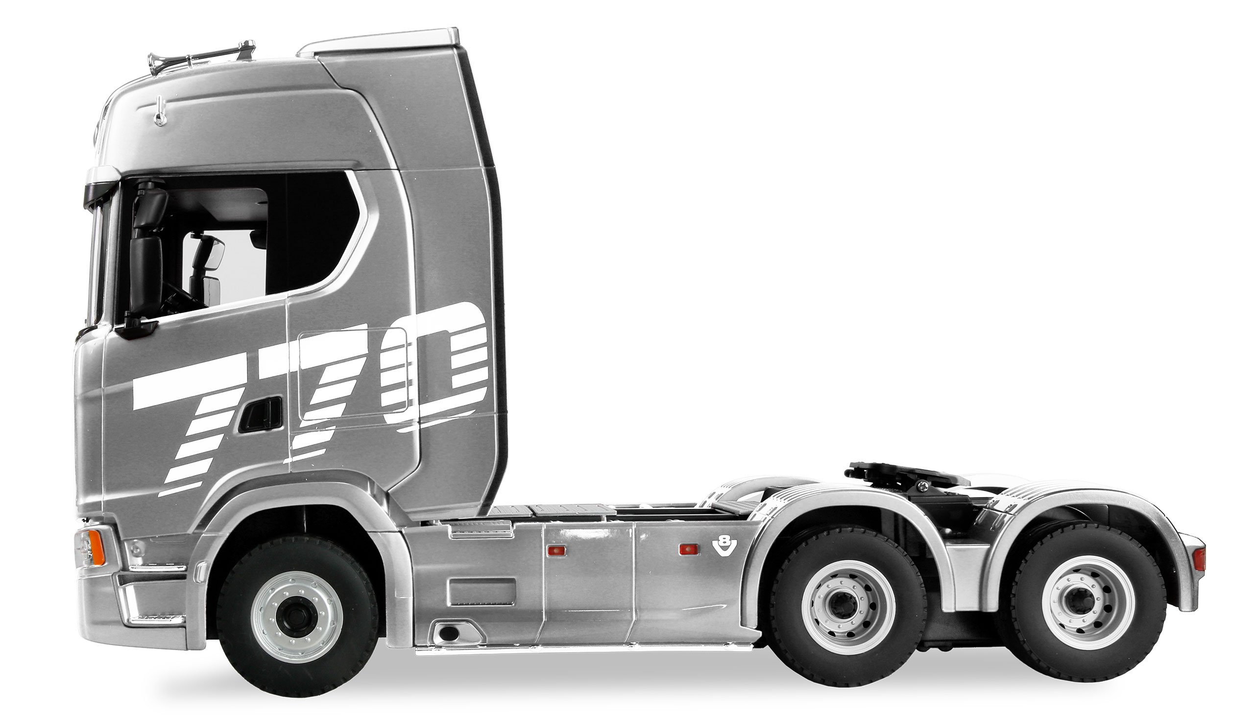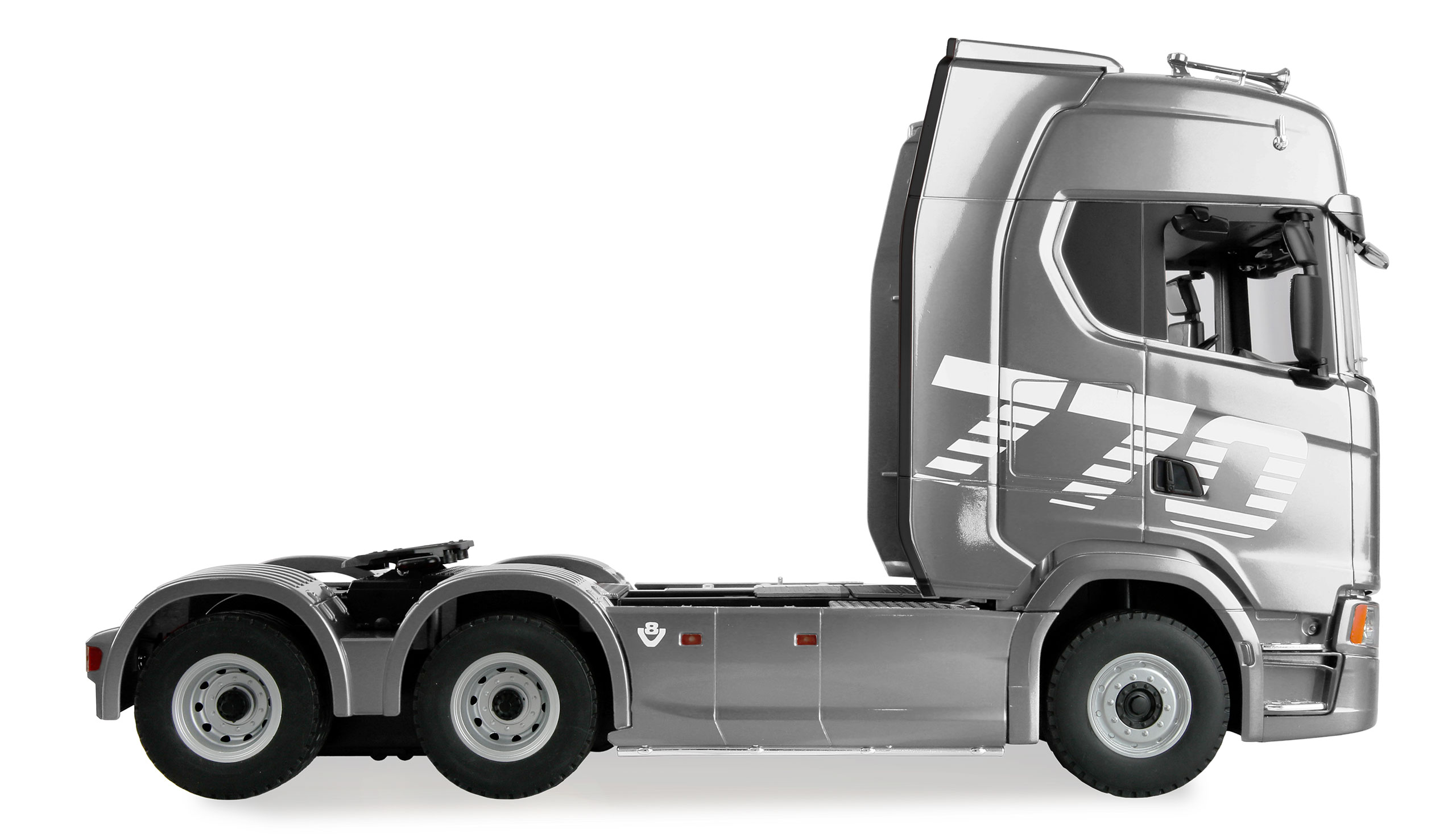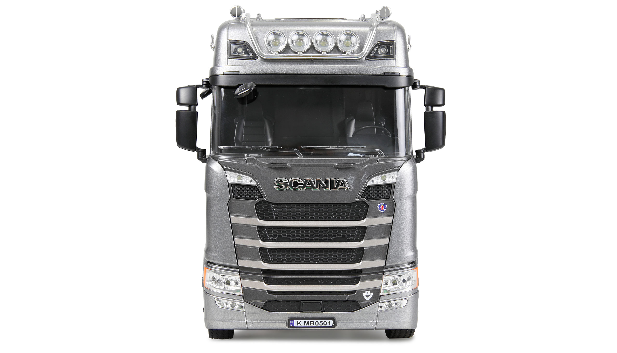 Der lizenzierte Nachbau des Scania 770 überzeugt mit beeindruckender Technik, realistischer Optik und durchdachten Funktionen – ideal für Modellbau-Enthusiasten und Truck-Fans des kleineren Maßstabs. Dank proportionaler Fahrfunktionen lässt sich das Fahrzeug präzise und feinfühlig in alle Richtungen manövrieren. Der kraftvolle 4WD-Antrieb in Kombination mit griffiger Gummibereifung sorgt für optimale Traktion – selbst beim Ziehen eines Anhängers. Für ein authentisches Fahrerlebnis ist die realistische LED-Beleuchtung direkt über die Fernsteuerung schaltbar.
