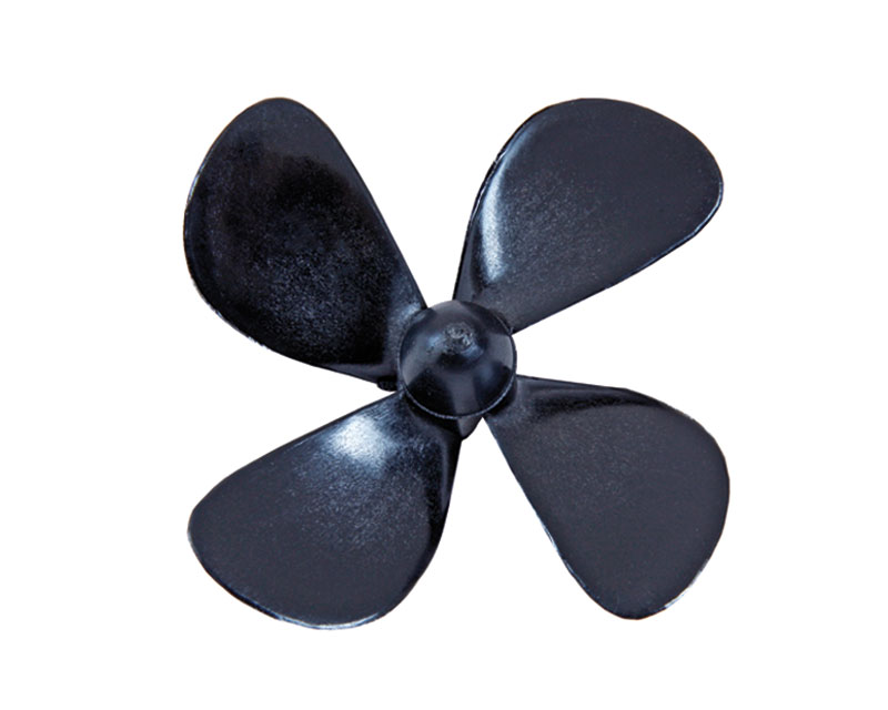4-Blatt Schiffsschrauben aus schlagzähem Kunststoff mit präzisem Gewindeeinsatz M5 aus Messing. Die Schiffschrauben sind als rechts- und linkslaufende Varianten verfügbar. Laufrichtung vom Motor aus gesehen.