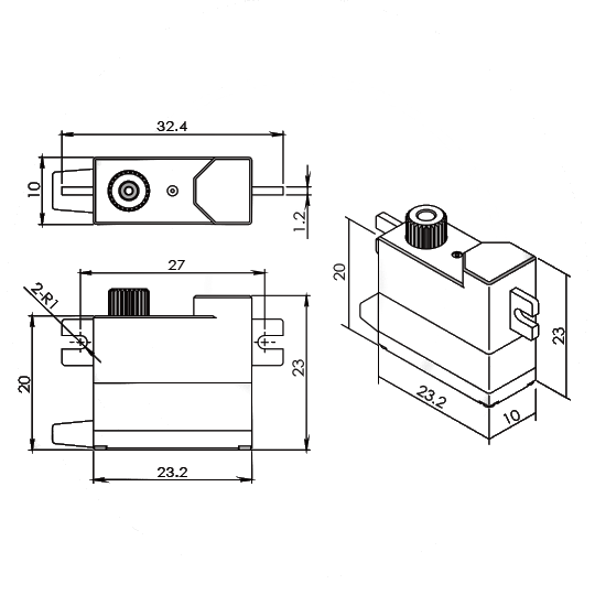 | Abmessungen (H x B x T) | : | 23,2 x 10 x 23 mm | |