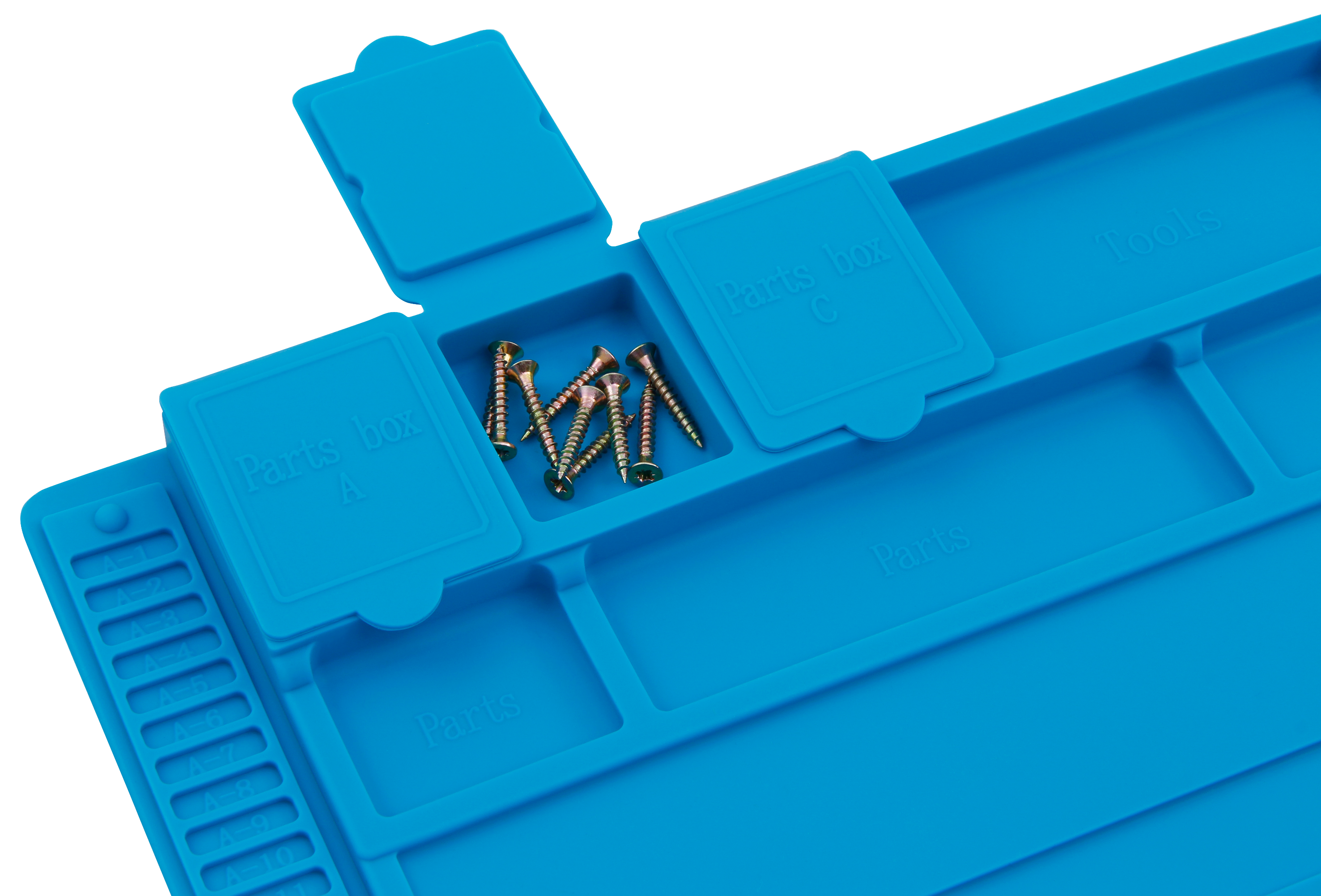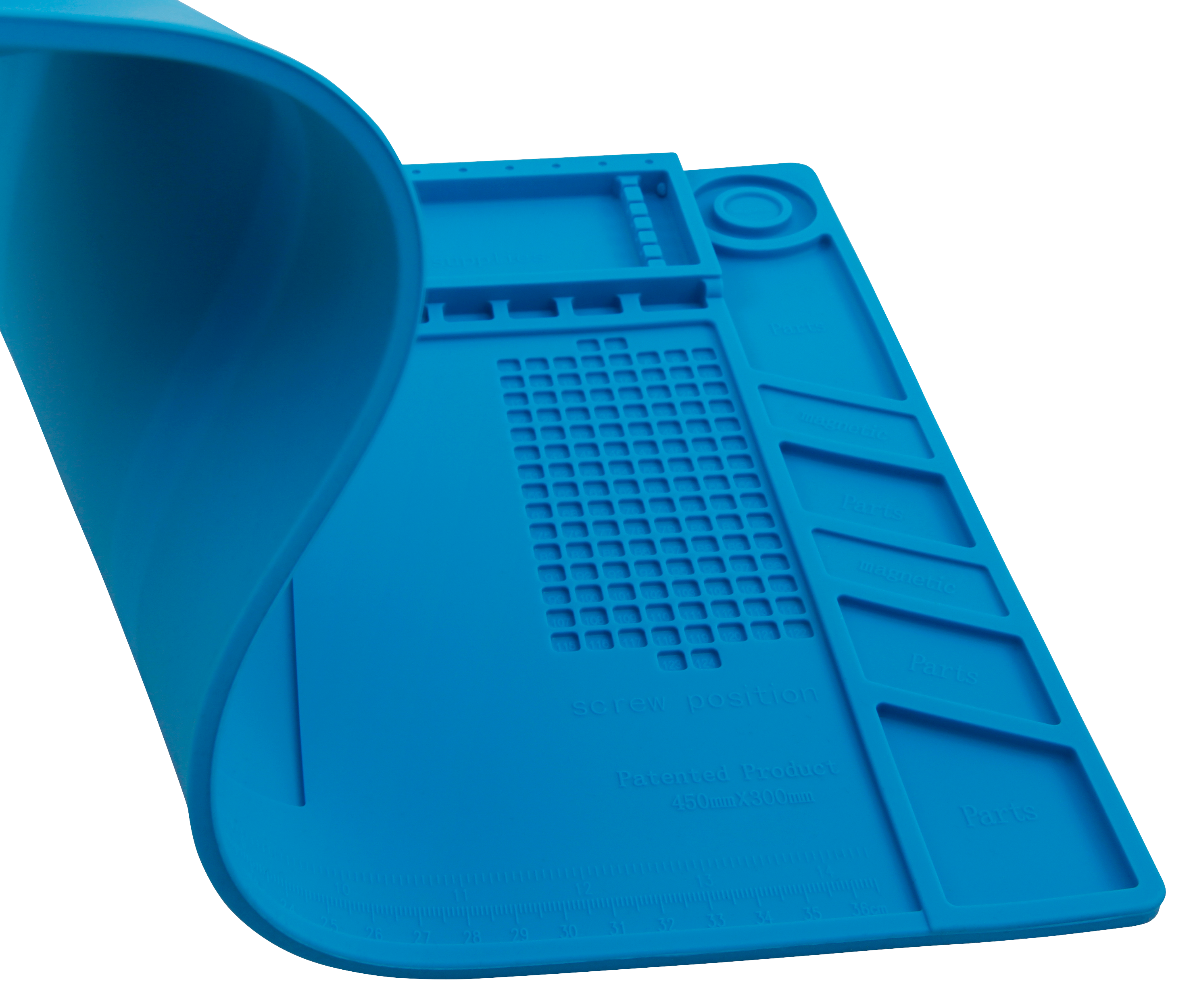 Eine mehr als praktische Silikon-Arbeitsmatte für z.B. Lötarbeiten oder Reparaturen von Elektronik-Komponenten.