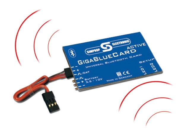 GigaBlueCard active Die GigaBlueCard active ermöglicht die kabellose Kommunikation zwischen einem PC oder Smartphone und verschiedenen Simprop-Geräten per Bluetooth. Dies eröffnet vielfältige Möglichkeiten für fast jeden Modellbauer, ganz gleich ob in der Luft, an Land oder auf dem Wasser. Der Fantasie und Kreativität sind kaum Grenzen gesetzt.