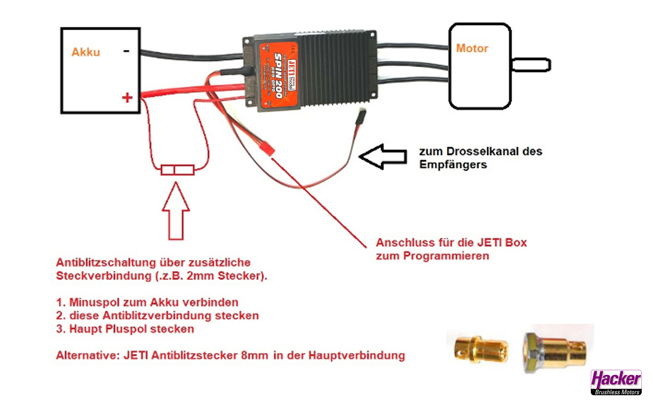Zum Programmieren des Controllers, sowie zum Auslesen der Daten ist kein Computer sondern lediglich die Jeti Spin Box nötig.