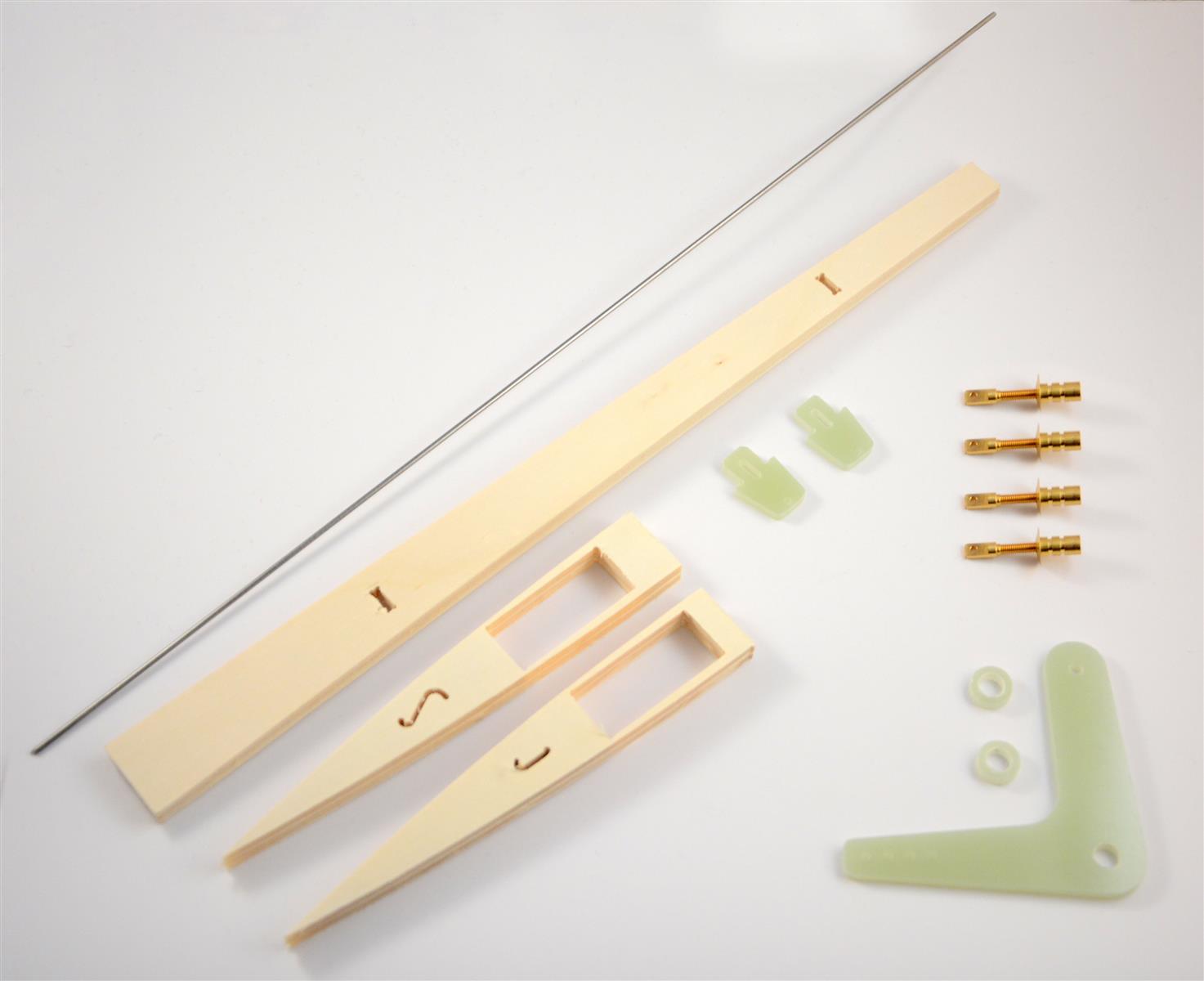 Stingray Spantensatz Bestehend aus Seitenflossenspant mit GFK Scharnieren Seitenleitwerk Servoaufnahme S für Savox SH-1250MG J für JETI Servo DSHV-3D13T 2x GFK-Lager für Höhenleitwerk Anlenkhebel für Höhenleitwerk 1,5mm Stahldraht 33cm lang