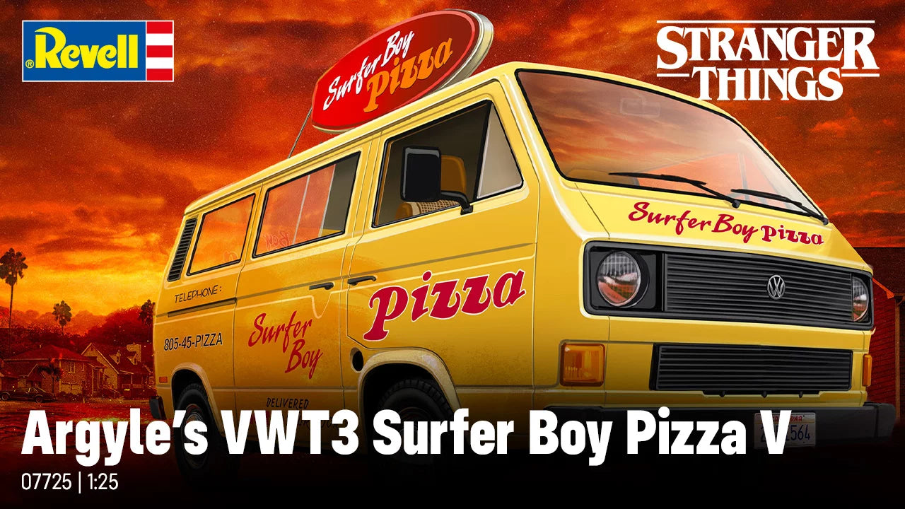 Er erschien auch bei der Entdeckung von Elf beim „Nina-Projekt“ in der Wüste Nevadas und half beim „Angriff“ auf Vecna in der letzten Folge der Staffel, „Huckepack“. Dieser Modellbausatz mit einem Maßstab von 1:25 ist eine detaillierte Hommage an die Vielseitigkeit des Vans in seinem 1980er Pizzarestaurant-Anstrich. „Schön festhalten, Brochachos.“
