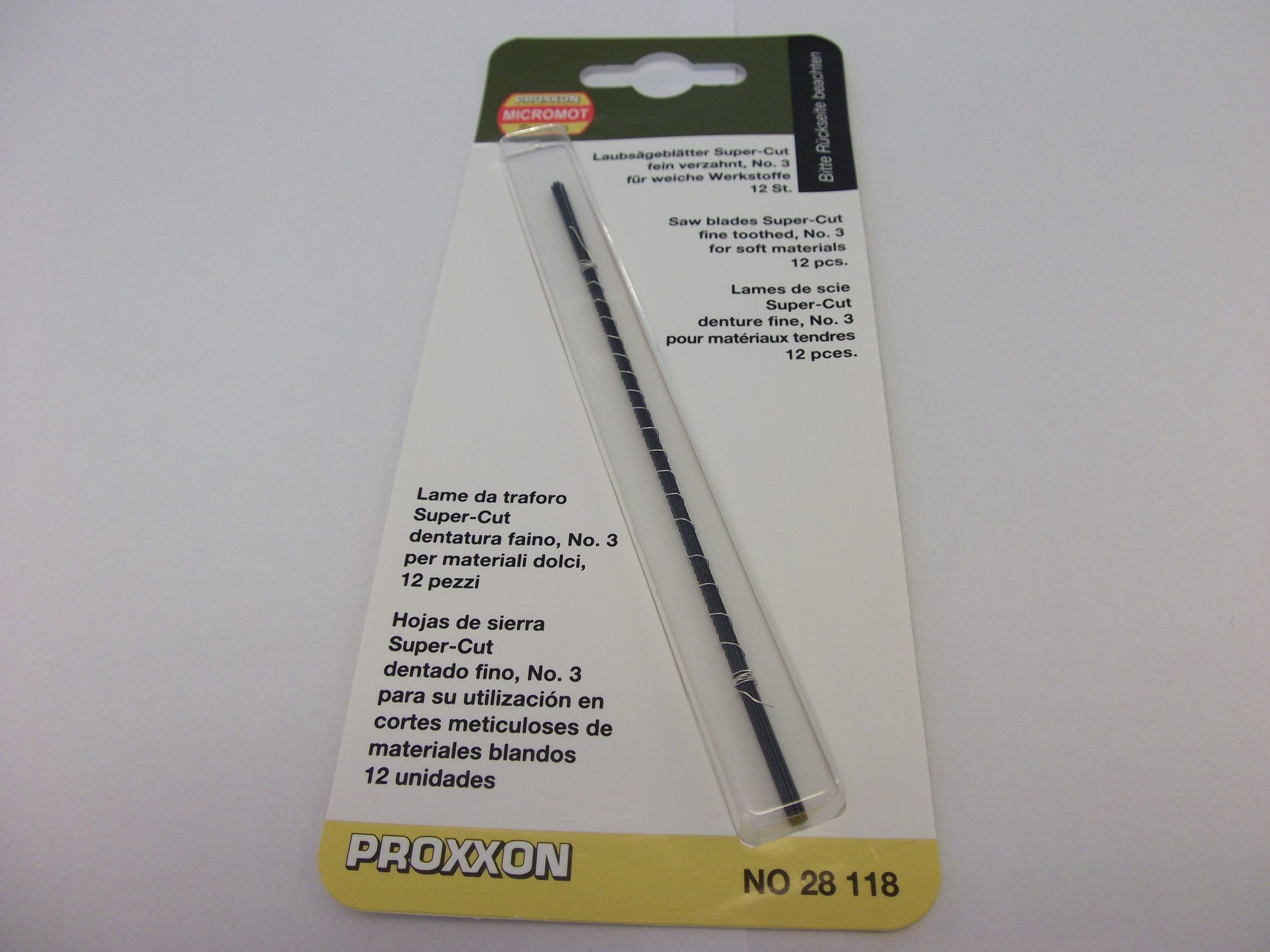 - 12 Super-Cut-Laubsägeblätter für Holz, fein verzahnt, (No.3: 34 Zähne auf 25 mm)