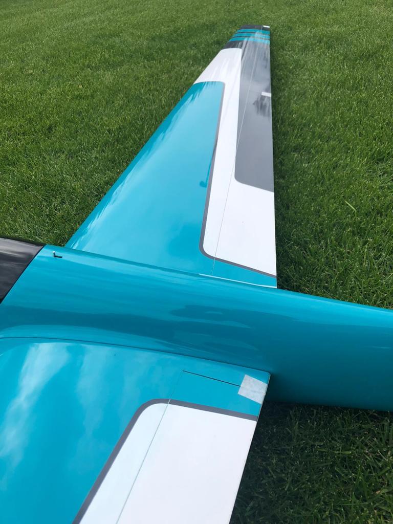 - hochglänzend lackierter GFK/CFK Rumpf mit fertiger Höhenruderverschraubung und montiertem Seitenruder