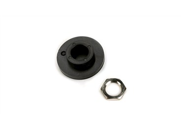 Schwarzer Kunststoff mit einer Metallscheibe.