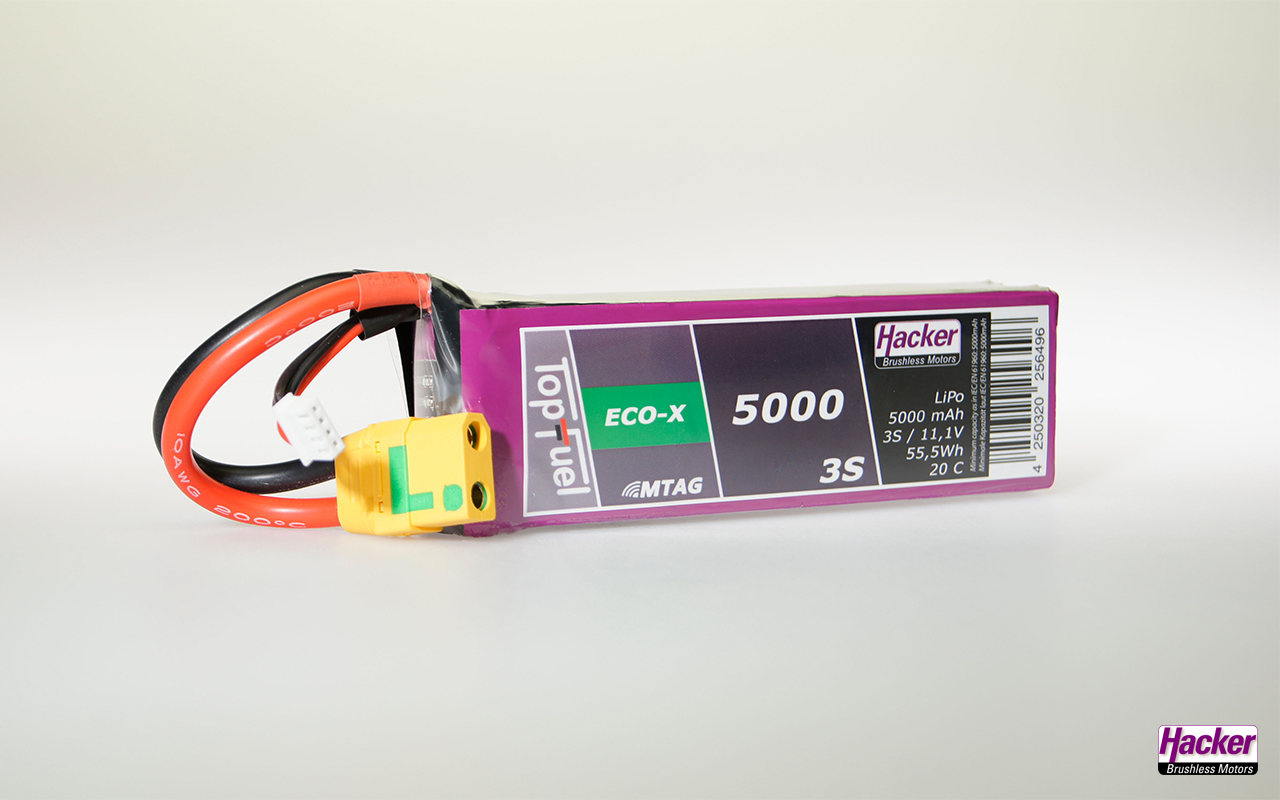 - XT90-S-Anschluss mit Goldkontakten und Antiblitz-Funktion, geeignet bis 90 Ampere Dauerbelastung