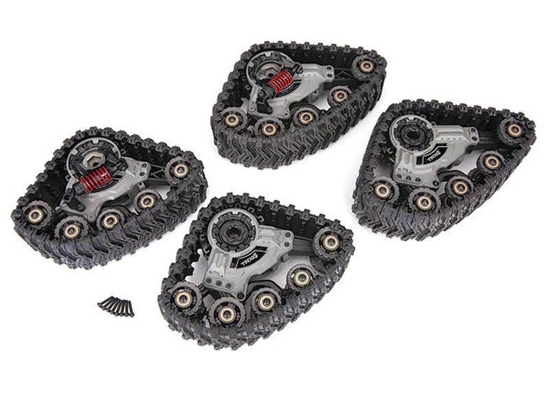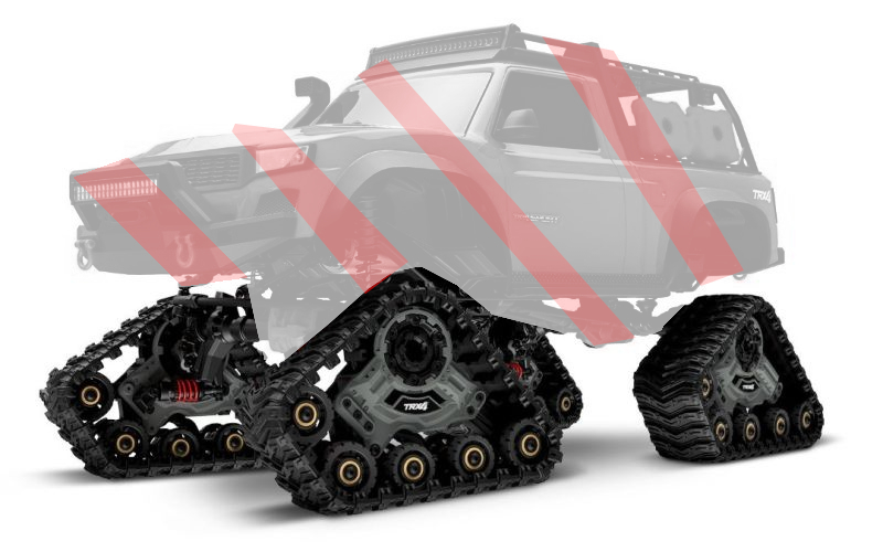 Der neue All-Terrain-Traxx ™ ist das extremste Upgrade, welches du am TRX-4 durchführen kannst. Der TRX-4 hat bereits extreme Fahreigenschaften im Gelände, aber die Installation eines Traxx-Sets macht dein TRX-4 zu einer Maschine, die vor keinem Gelände mehr aufgehalten wird. Die enorme Auflagefläche und das griffige Profiel nehmen den tiefsten Schlamm auf und schweben über tiefen Sand. Die Traxx heben die Portalachsen noch weiter an (über 16 mm!), somit kannst du noch größere Hindernisse überwinden.