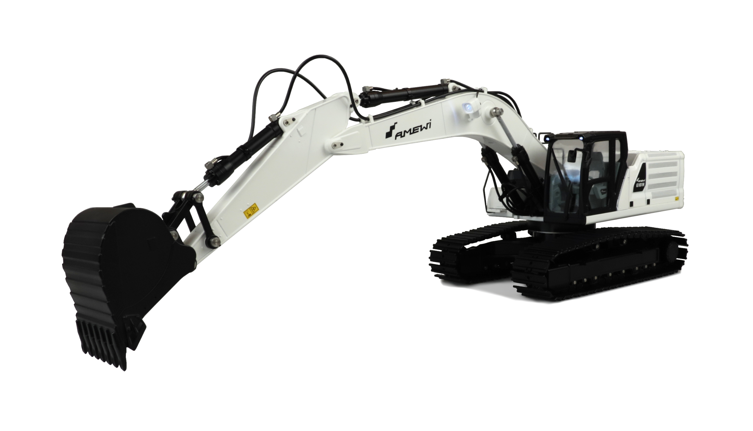 Exklusiver hochwertiger Kettenbagger im Maßstab 1:16 als RTR Modell im exklusiven Amewi Design mit 2,4GHz Sender, Akku, Ladegerät und allem Zubehör, was für den Betrieb erforderlich ist (außer Batterien für den Sender).