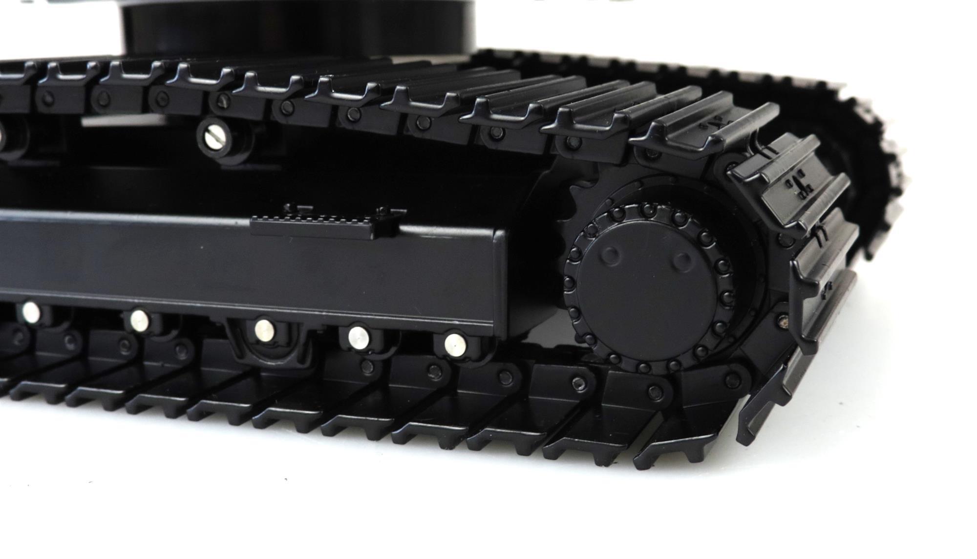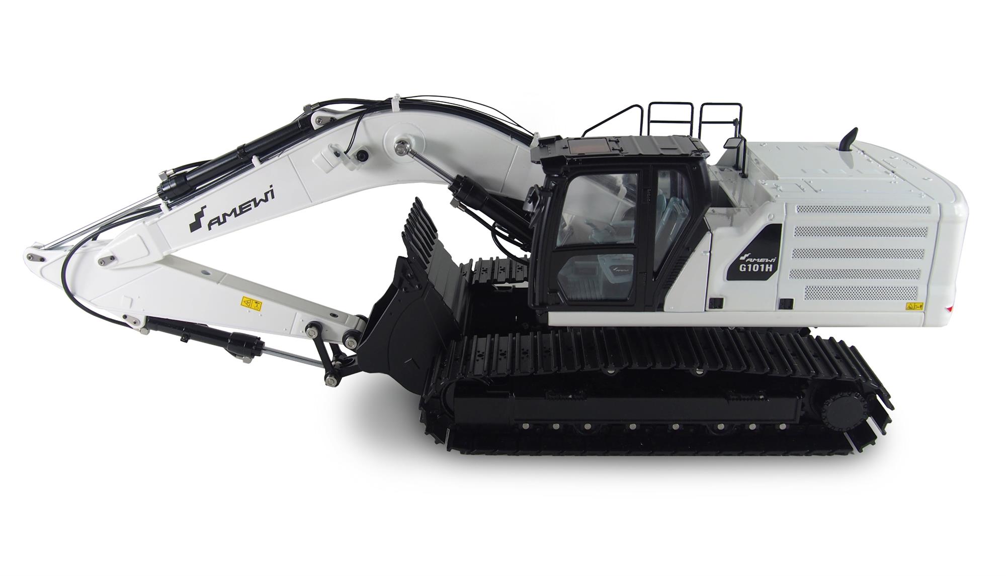 Hochwertige Verarbeitung gepaart mit hochwertiger Technik, so lässt sich dieses Modell am besten beschreiben. Der gesamte Aufbau besteht aus Metall und die Ausleger so wie das Arbeitsgerät (Schaufel) sind hydraulisch angetrieben. Das Fahrwerk wird mit brushless Motoren betrieben dabei ist für jedes Kettenrad links und rechts, je ein Motor zuständig. Auch die Hydraulikpumpe arbeitet mit einem brushless Motor. Somit steht immer genügend Kraft für anstehende Arbeiten zur Verfügung. Das Modell ist dabei sehr feinfühlig über den mitgelieferten 2,4GHz Sender mit Eurosteuerung (Knüppelbelegung wie im echten Bagger) bedienbar.