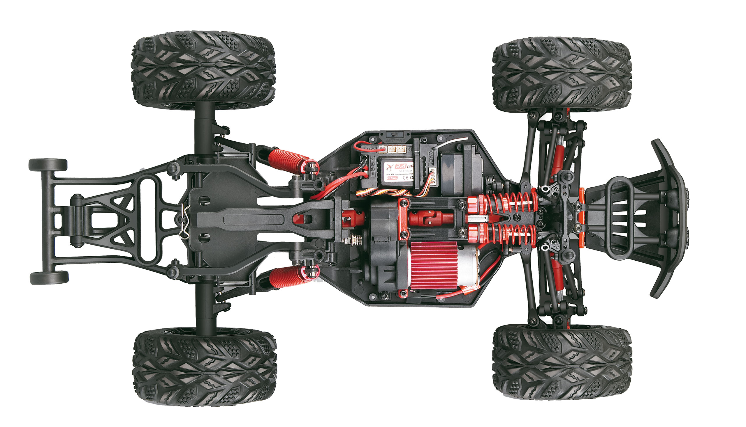 X-King, 4WD RTR Monstertruck im Maßstab 1:12. Egal ob Funpark, Tracks oder hohe Jumps – der X-King ist für radikale Action bereit. Starrachse hinten, Ultra Suspension Aufhängung sorgen für maximale Geländegängigkeit. Blitzschnell von Rechts- auf Linkshänder Steuerung umschaltbar. Leistungsstarker 380’er Elektromotor. Permanenter 4-Rad Antrieb für beste Performance. Lithium Ionen Akku sorgt für lange Fahrzeit, maximale Power und Betriebssicherheit.