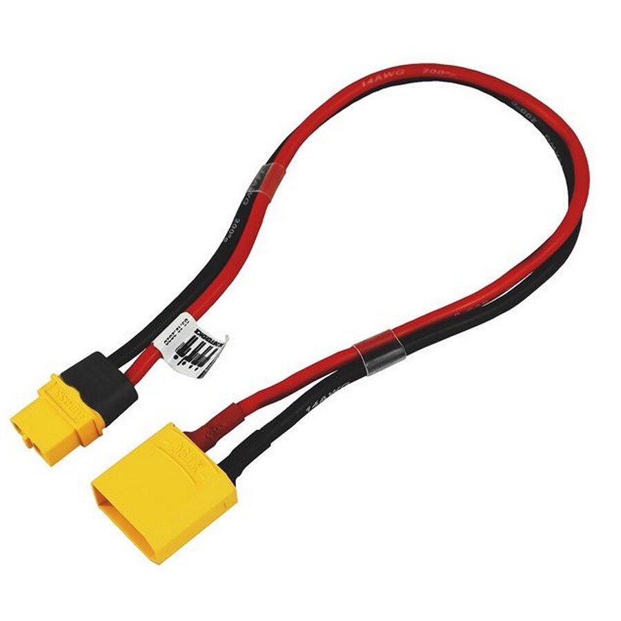 Ladekabel XT60 auf XT90 Das gebrauchsfertig gelötete und mit Schrumpfschlauch isolierte Ladekabel ist mit einer XT60-Buchse ausgestattet, passend für Ladegeräte mit XT60-Stecker am Ladeausgang. Die Steckverbinder bestehen aus vergoldetem Messing. Durch die Goldbeschichtung werden die Leitfähigkeit und Korrosionsbeständigkeit erhöht. Die Gehäuse sind aus schlagzähem Nylon gefertigt. Die ca. 30 cm langen Kabel bestehen aus Kupferlitzen von 14 AWG bzw. 2,5 mm² Drahtdurchmesser, die mit flexiblem und temperaturbeständigem Silikon ummantelt sind.