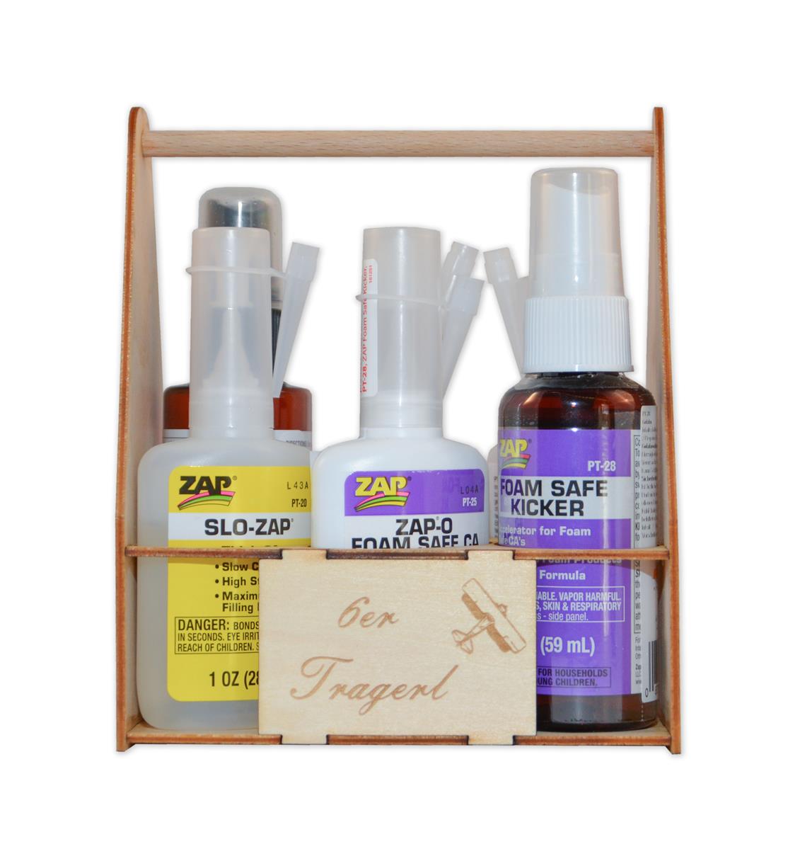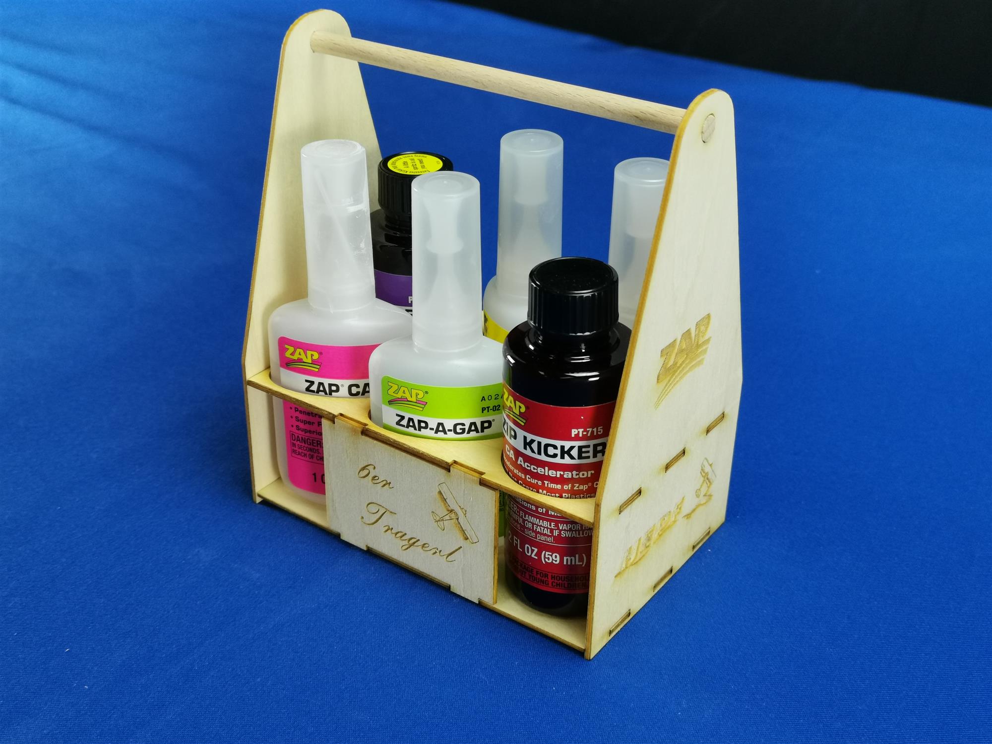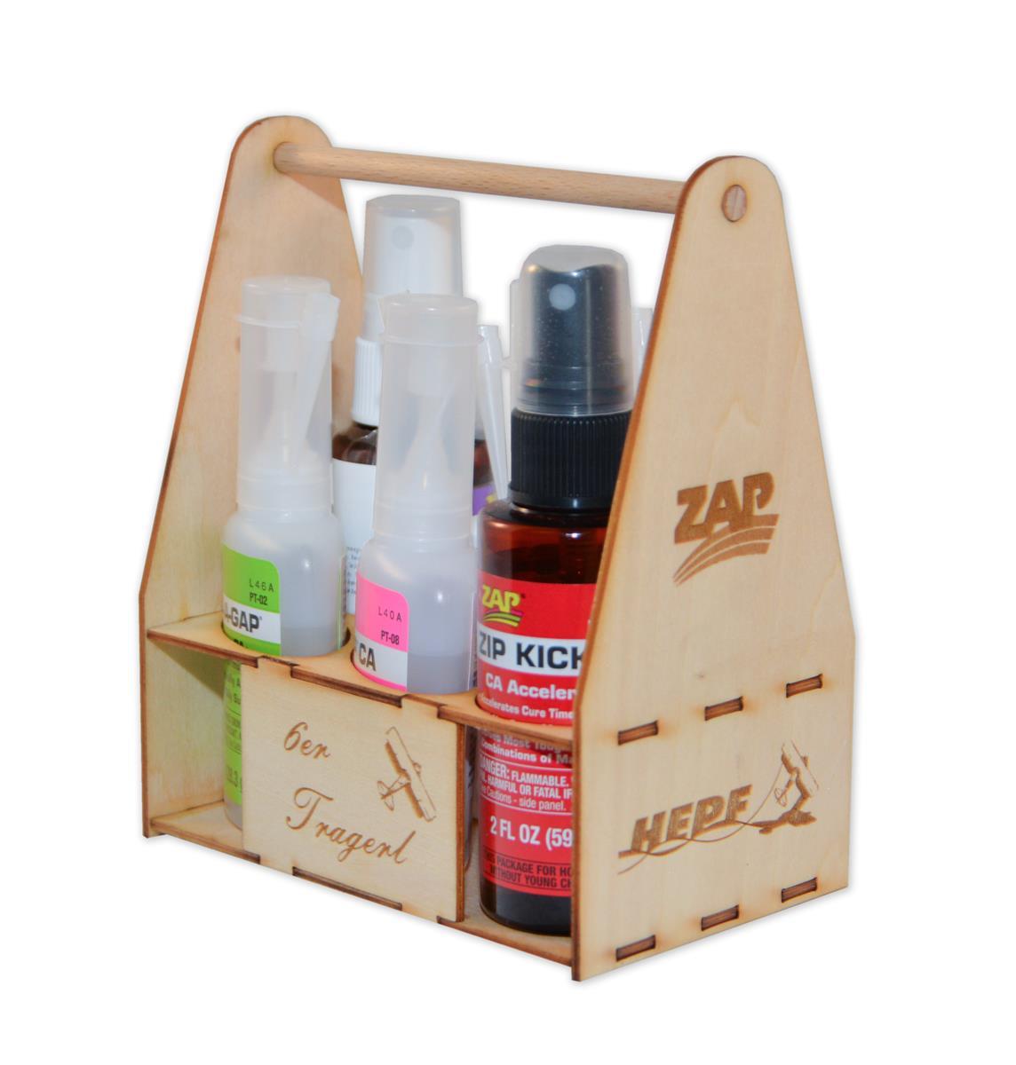 Sekundenkleber ZAPfen leicht gemacht, mit dem bequemen “6er Tragerl” von HEPF Modellbau!