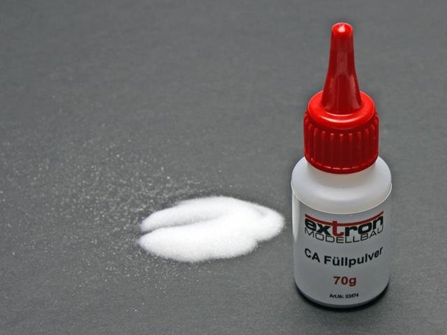Fein rieselndes Füllmaterial, das in Verbindung mit dünnflüssigem CA Sekundenkleber stabile Fugenverbindungen herstellt.